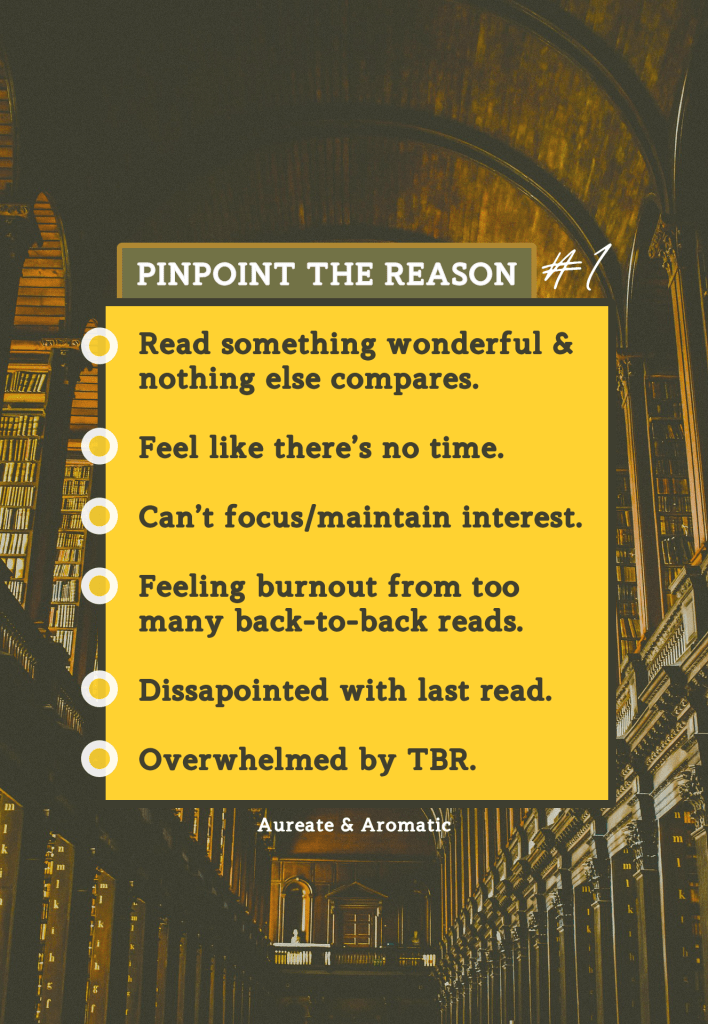 This time around, I personally was unable to maintain interest, but my last slump was caused by burnout after having a good run of solid reads.