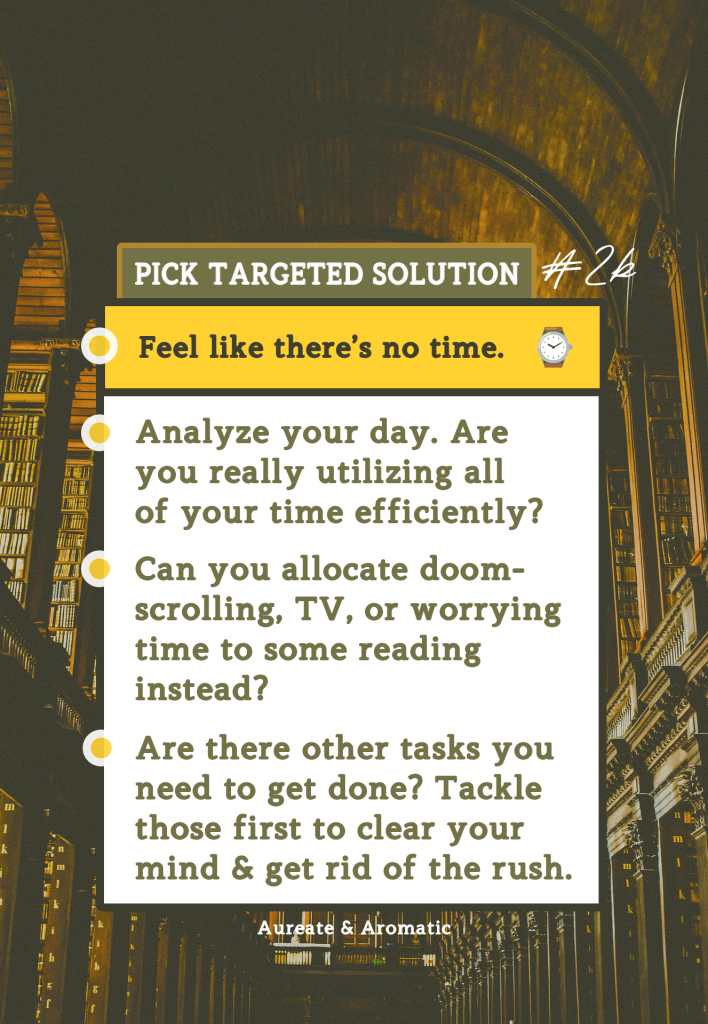 In these instances it’s important to take a moment and reset. Try and work through the things in the way one by one. And eventually your mind will clear and you’ll feel open to wanting to read.