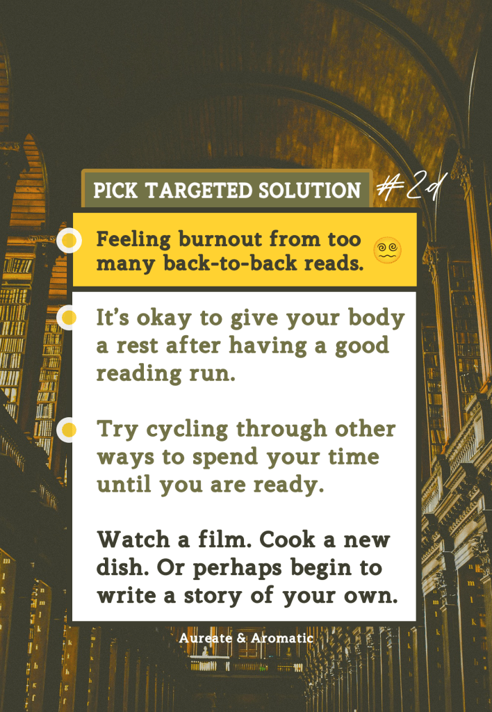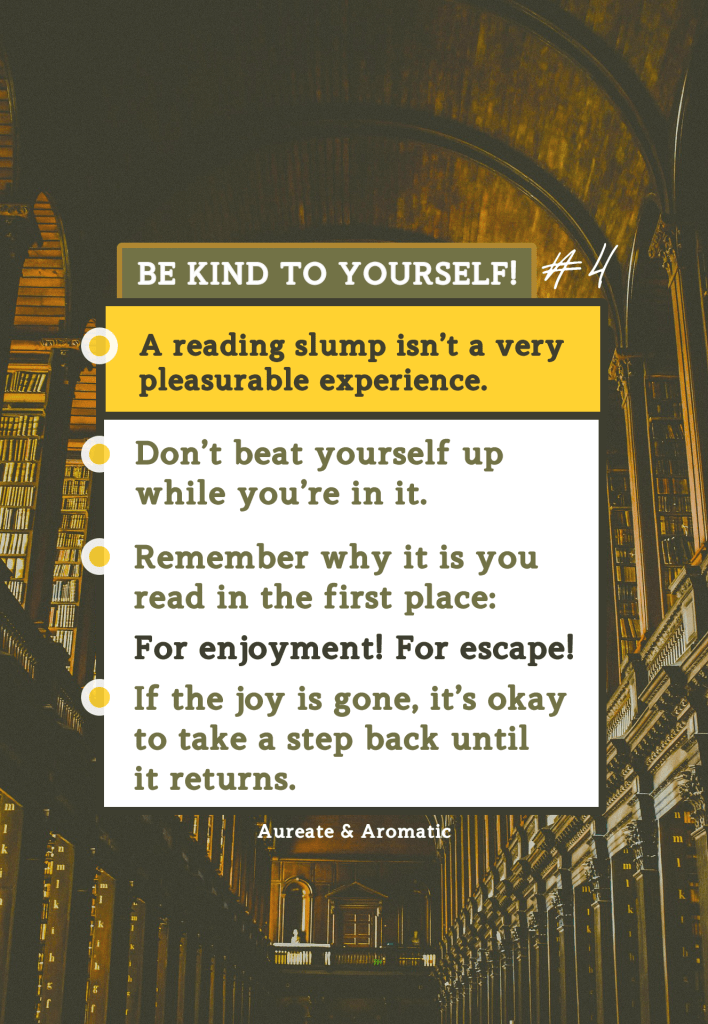 Finding joy in other things, like crafting your own story or completing other hobbies, can help you rest and reset so that you’re ready to get back into the groove of reading.