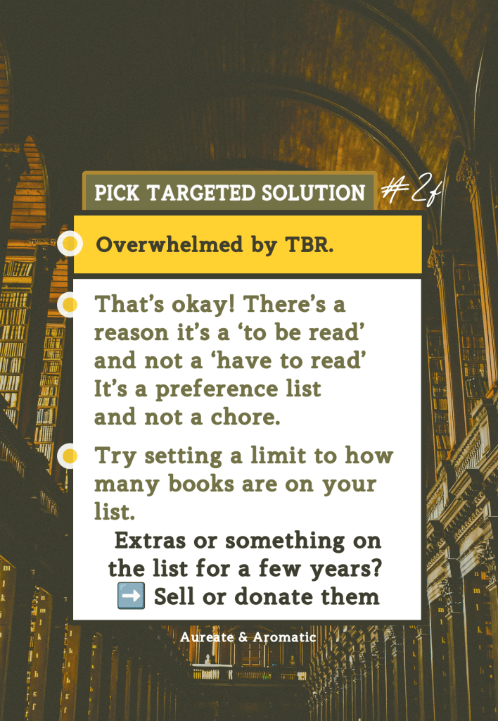 Reduce your reading goals or limit how many books are on your list overall. Set a cap, whether that be 50, 100, or 200. If you have those books resting in your home – on shelves, drawers or end tables – then perhaps it’s time to give them to others. You can gift them to fellow reader friends or family who maybe aren’t into reading as much and may enjoy them as a change of pace. Or you can sell or donate them.