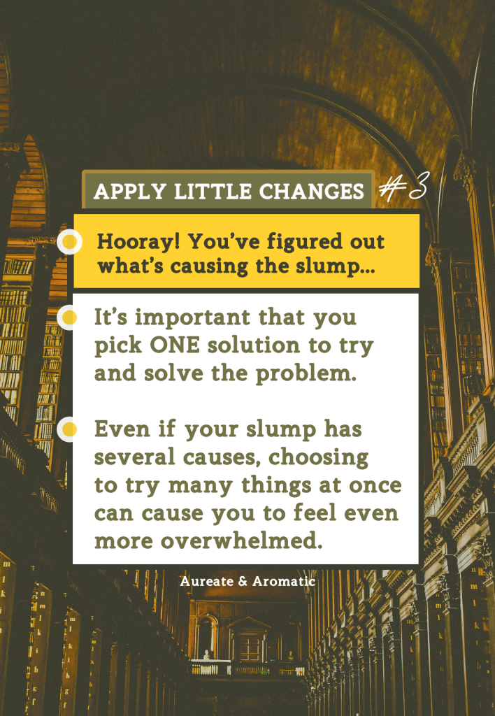Now that you’ve taken the time to reflect and think about what particular reasons are causing your reading slump – it’s time to make little changes. Emphasis on the little.