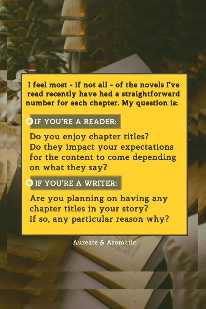 I’m determined to complete my current read this week. Whilst doing so, I noticed that the chapters have a mixture of ones that are brief and unnumbered or the regular numeration.