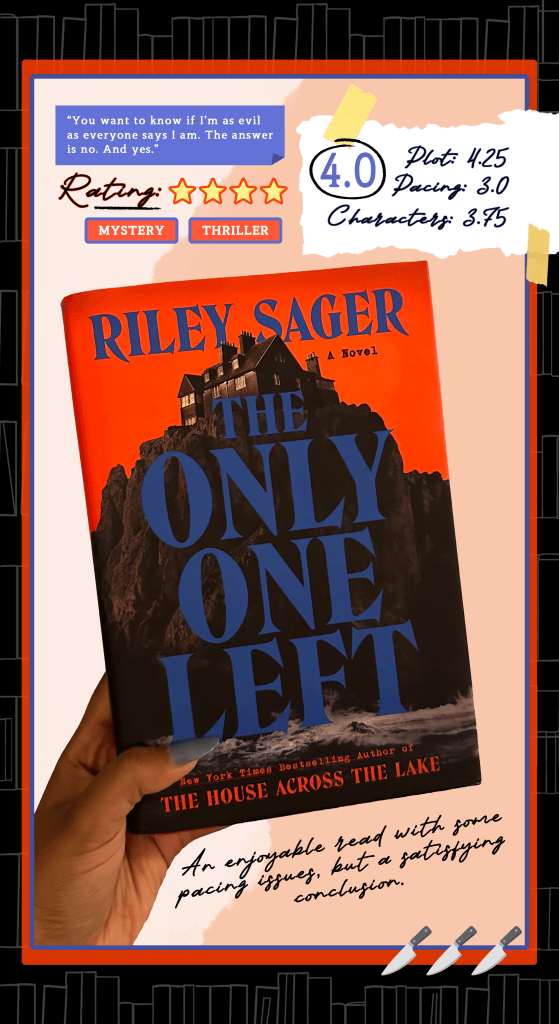 So I finally finished my first read of September this past weekend, and it was The Only One Left by Riley Sager.