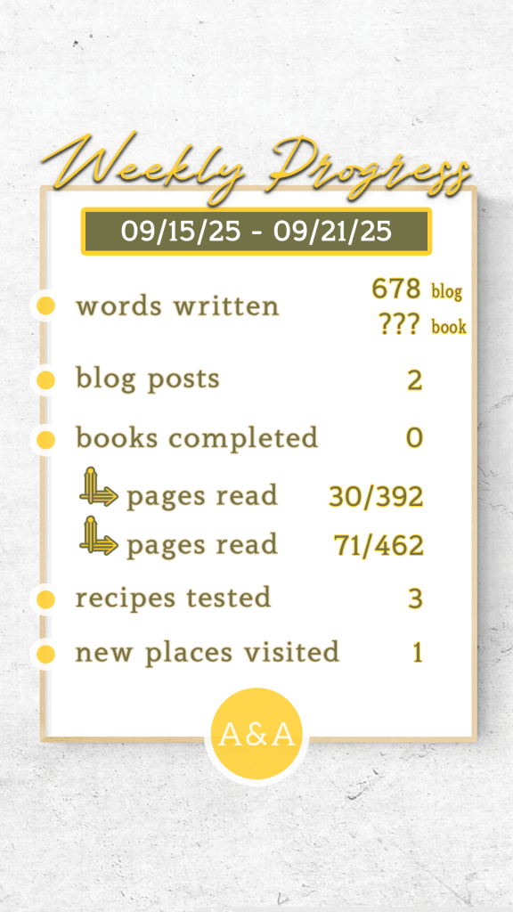 Unfortunately, ’twas a week that wasn’t that productive work-wise or reading-wise, but I shall still be documenting and sharing this mostly to hold myself accountable.